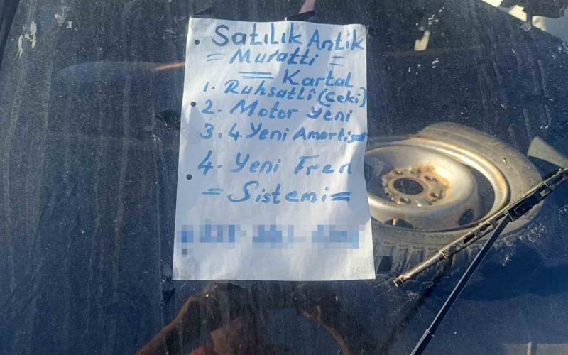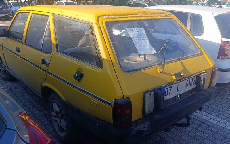Antalya’nın Manavgat ilçesinde hastane bahçesinde park halindeki 1984 model Tofaş Kartal marka otomobilin arkasındaki satılık ilanı görenlerin ilgisini çekti.