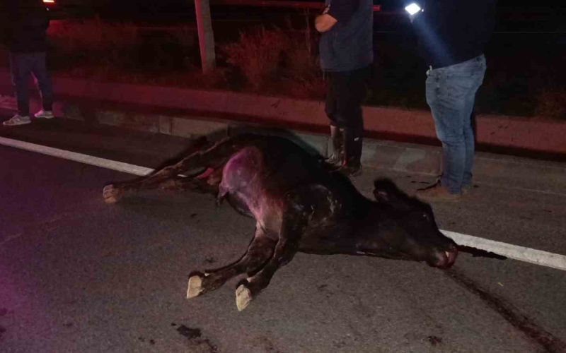 Ekipler olay yerine ulaşmadan bu kez kaza ihbarı geldi. Olay yerine gelen ekipler, Yemişli mesire alanı önünde ineğin cansız şekilde yattığını gördü. Vatandaşlar bazı araçların karanlıkta ineği görmeyerek, çarptığını söyledi. Kazanın ardından telef olan inek bulunduğu yerden kaldırılıncaya kadar başka kazaların yaşanmaması için trafik ekipleri başta olmak üzere polis tarafından D-400 kara yolunda geniş çaplı önlem alındığı gözlendi.