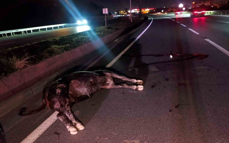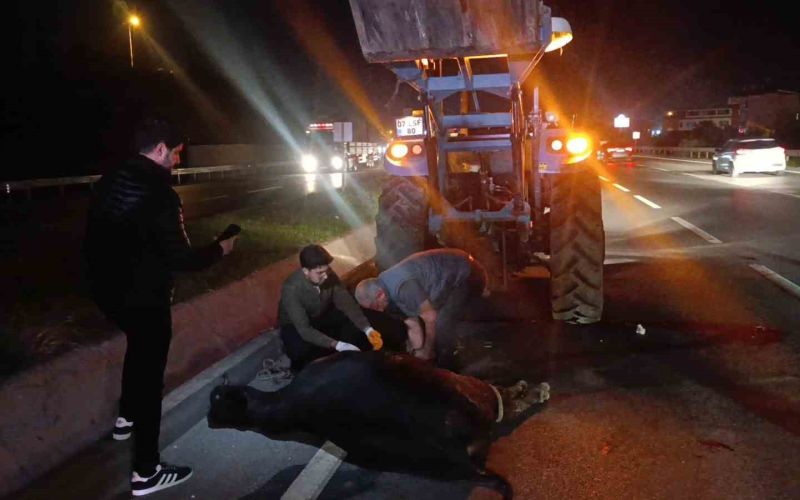 Antalya’nın Manavgat ilçesinde ağıldan kaçan ve D-400 kara yolunda trafiği birbirine katan inek, yoldan geçen araçların çarpması sonucu telef oldu.