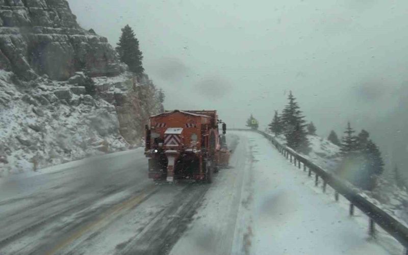 Antalya’yı Konya’ya bağlayan Akseki-Seydişehir karayolunun 1825 rakımlı Alacabel mevkiinde kar yağışı etkisini sürdürüyor.