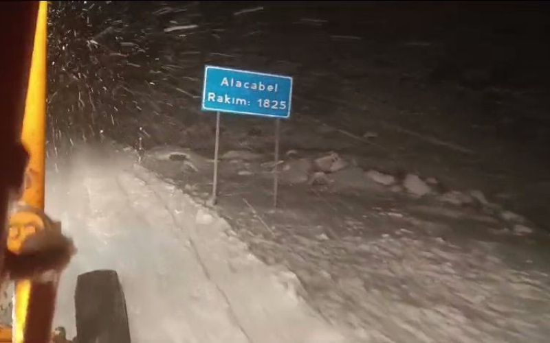Kar yağışının başlamasıyla birlikte Karayolları ekipleri, Alacabel mevkiinde iş makineleriyle kar küreme ve tuzlama çalışmalarına başladı. Ekiplerin, yolun ulaşıma açık kalması için çalışmalarını aralıksız sürdürdüğü bildirildi.