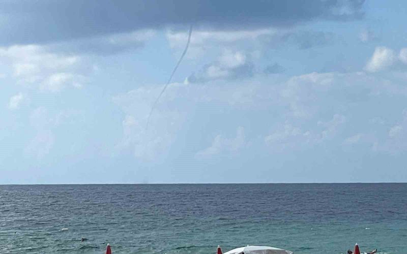 Alanya’da rüzgarlı hava etkili olurken, İncekum Plajı’nda denize dikey şekilde uzanan bir hortum çıktı. Plajda denize giren tatilcilerin merakla izlediği hortum bir süre sonra gözlerden kayboldu. Sahildekiler hortum anında ve sonrasında da denize girmeyi sürdürdü.