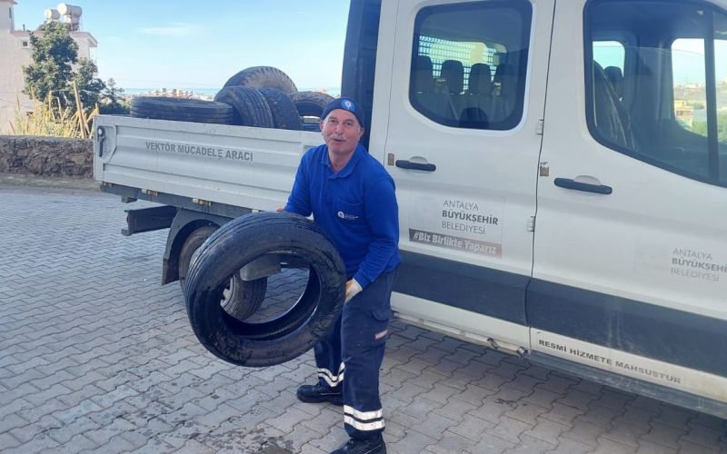 Antalya Büyükşehir Belediyesi, Alanya’da 6 yılda 30 tır atık araç lastiğini geri dönüşümle ekonomiye kazandırırken, sinek üremesinin de önüne geçti.