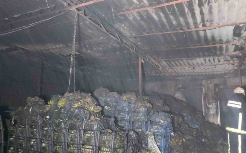 Antalya’nın Alanya ilçesinde bulunan Demirtaş Sebze ve Meyve Hali’nde muz sarartma tesisi deposunda çıkan yangın, itfaiye ekiplerinin müdahalesiyle kontrol altına alındı. Yangında kimse yaralanmazken tonlarca muz zarar gördü.