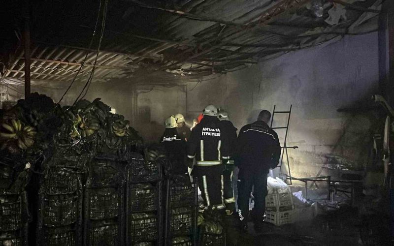 Yangın, saat 21.30 sıralarında Alanya’nın Demirtaş Mahallesi Demirtaş Sebze ve Meyve Hali’nde meydana geldi. Edinilen bilgiye göre, henüz belirlenemeyen bir nedenle muz sarartma deposunda çıkan yangın, kısa sürede büyüyerek yan tarafta bulunan depoya sıçradı. Alevler nedeniyle depolarda bulunan tonlarca muz zarar gördü. İhbar üzerine olay yerine itfaiye, jandarma ve olay yeri inceleme ekipleri sevk edildi. İtfaiye ekiplerinin müdahalesiyle yangın kontrol altına alınarak söndürüldü. Olay yeri inceleme ekipleri yangının çıktığı alanda inceleme yaptı. Yangınla ilgili soruşturma başlatıldı.