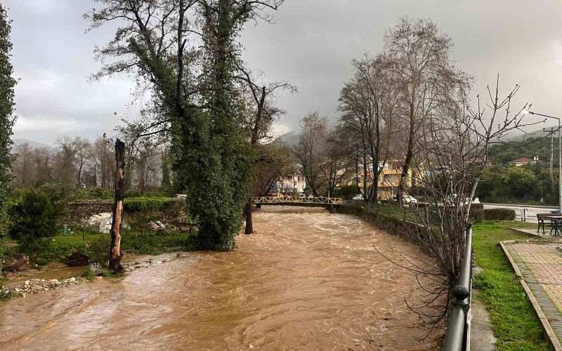 Alanya’da sağanak sebebiyle Oba Çayı taştı, binaların bahçelerini su bastı