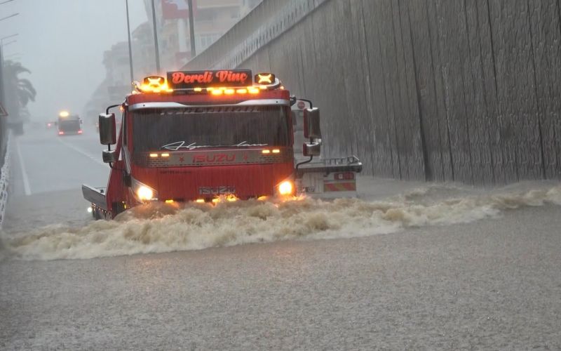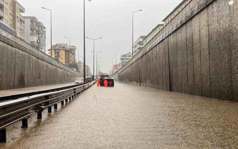 Meteoroloji Genel Müdürlüğünün sarı kodla uyardığı Alanya’da dün akşam saatlerinde başlayan yağmur bugün itibariyle devam etti. Şehir merkezinde yer yer aşır yağıştan dolayı yollarda su birikintisi oluşurken bazı yerlerde ise yağıştan dolayı rögar kapakları taştı. D-400 karayolu Keykubat Caddesi üzerindeki alt geçitte bir araç yoğun yağış nedeniyle mahsur kaldı. İhbar üzerine olay yerine sevk edilen itfaiye ekipleri, sürücüyü güvenli şekilde çıkararak aracı bulunduğu yerden kaldırdı. Mahsur kalan araca yardım için bölgeye yönlendirilen çekici ise ilerlediği sırada aşırı yağıştan etkilenerek yine alt geçitte mahsur kaldı.