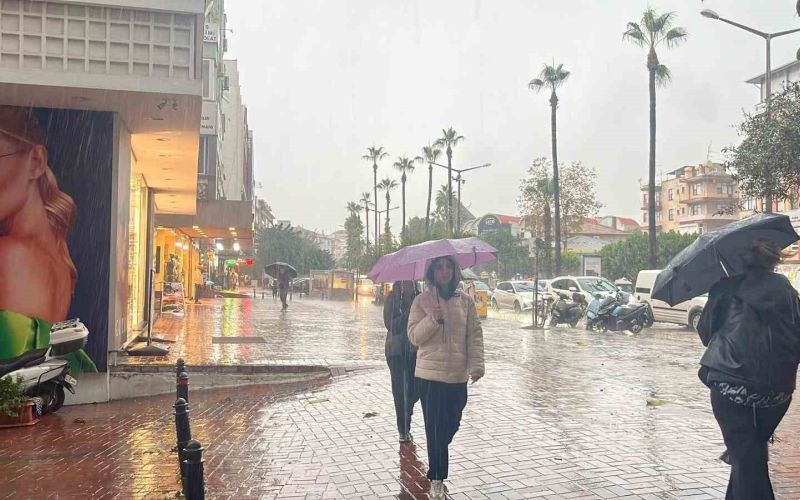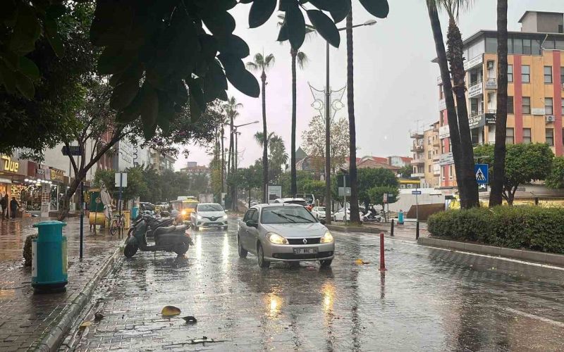 Antalya’nın Alanya ilçesinde sabah saatlerinde başlayan yağış, öğle saatlerinde sağanağa dönüşerek etkili oldu.