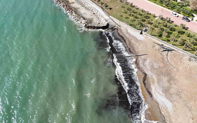 Antalya’nın Alanya ilçesine bağlı Türkler Mahallesi sahilinde kıyı şeridinde deniz üzerinde oluşan siyah tabaka vatandaşları tedirgin etti.