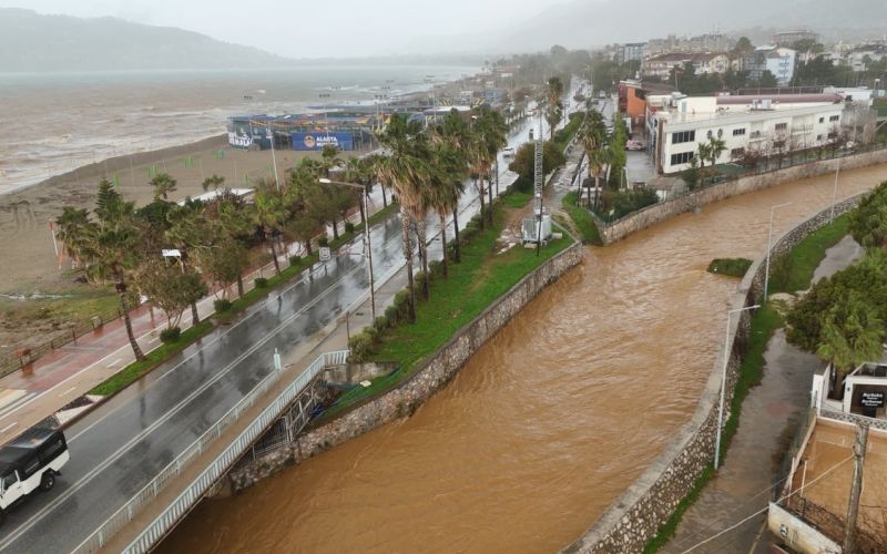 Alanya’da öğle saatlerinden itibaren etkili olan toz taşınımı, sağanak yağışla birlikte ilçe genelinde hayatı olumsuz etkiledi. Yağışın ardından bazı mahallelerde çamur yağarken, derelerden denize taşınan sular sahil kesiminde denizin rengini kahverengiye çevirdi.