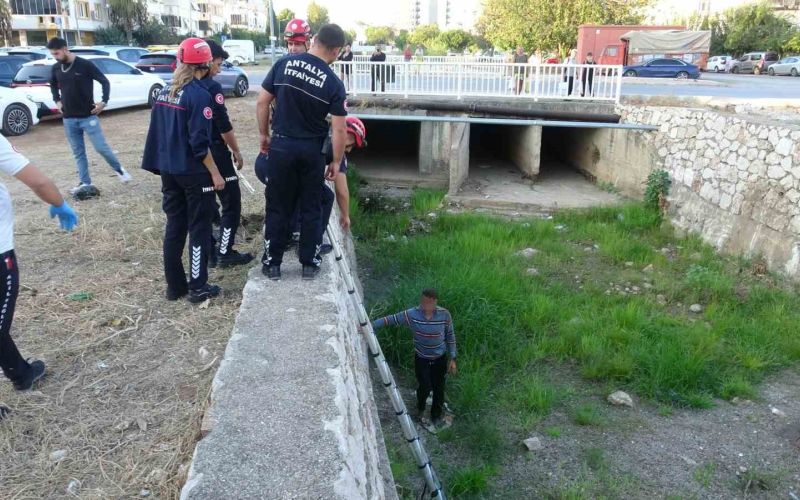 Kanaldan tek başına çıkamayan Gökhan H.’ye çevredeki vatandaşların yardım çabaları yetersiz olunca 112 Acil Çağrı Merkezi’ni arayarak yardım istendi. İhbar üzerine verilen adrese gelen Antalya Büyükşehir Belediyesi İtfaiye Daire Başkanlığı’na bağlı kurtarma ekibi Gökhan H.’yi merdiven yardımıyla bulunduğu yerden çıkardı. 112 Acil sağlık ekiplerinin yardım talebini durumunun iyi olduğunu belirterek kabul etmeyen Gökhan H. düştüğü noktaya tekrar giderek kanal kenarında bıraktığı malzemeleri tüketmeye devam etti.