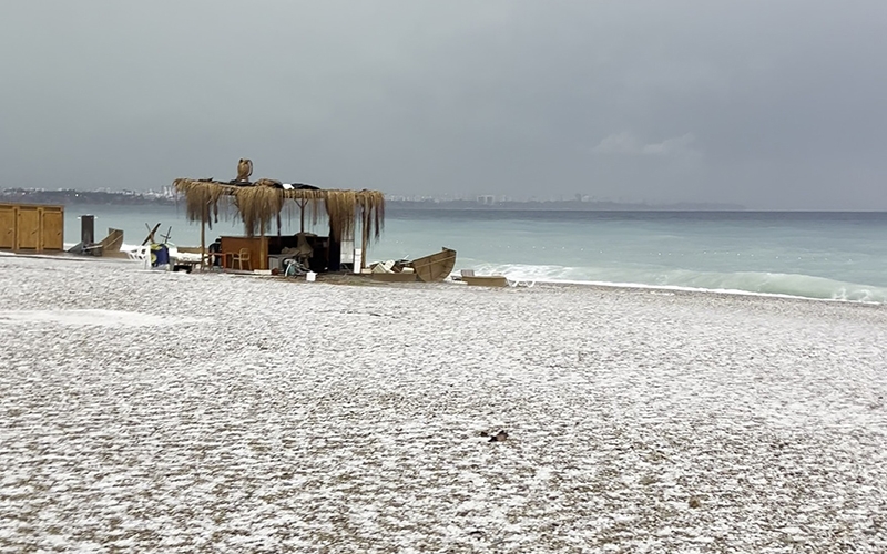 Antalya’da aniden bastıran yağmur, dolu ve fırtına kent sakinlerine adeta kabusu yaşattı. Yağan dolu dünyaca ünlü Konyaaltı Sahili beyaza bürüdü.