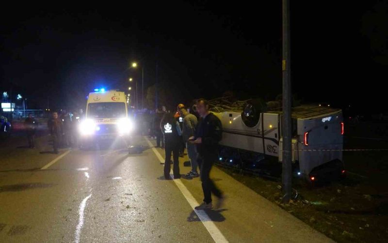 Kaza, Döşemealtı ilçesi Akdeniz Bulvarı üzerinde saat 20.30 sıralarında meydana geldi. Edinilen bilgiye göre, vardiya değişimi sonrası mesaiden çıkan infaz koruma memurlarını taşıyan Mustafa O. yönetimindeki 07 C 4119 plakalı midibüs, sağ şeritten önüne çıkan tıra çarpmamak için fren yaptı. Sürücüsünün direksiyon hakimiyetini kaybettiği araç, yaklaşık 2 metrelik şarampole devrildi. İhbar üzerine olay yerine çok sayıda ambulans, itfaiye, AFAD, UMKE ve polis ekipleri sevk edildi. Midibüste bulunan infaz koruma memurlarından 16’sı yaralandı. Yaralılar, yapılan ilk müdahalenin ardından ambulanslarla çevredeki hastanelere kaldırıldı.