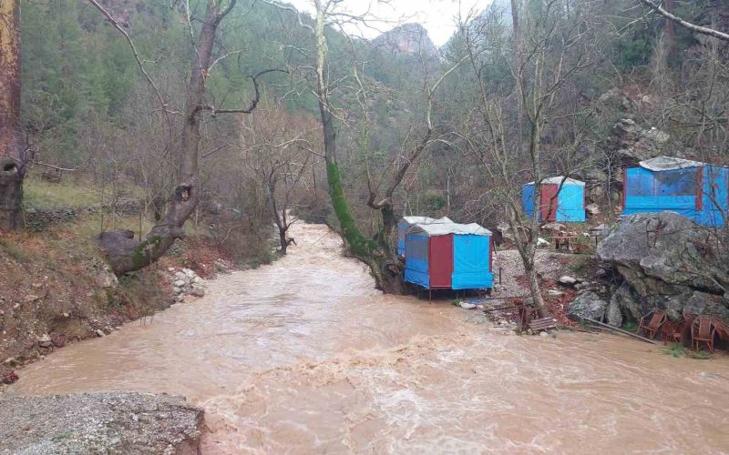 Antalya Gündoğmuş’ta dereler taştı, piknik alanları su altında kaldı