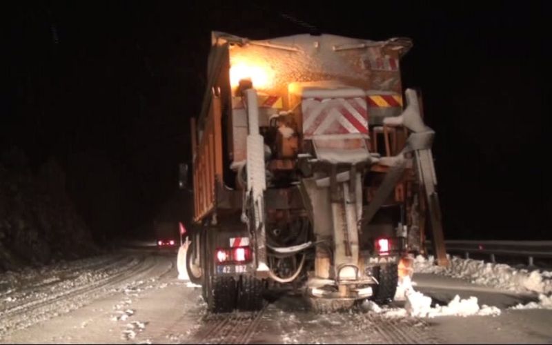 Antalya genelinde dün etkili olan sağanak yağış, gece saat 23.40 sıralarında itibaren özellikle Toroslar’ın yüksek kesimlerinde kara dönüştü. Akseki ilçesi Yarpuz Mahallesi’nden itibaren Seydişehir yönüne yaklaşık 20 kilometrelik alanda etkili olan yağışla birlikte karayolları ekipleri Alacabel bölgesinde alarma geçti. Çok sayıda iş makinesiyle sahaya çıkan ekipler, ulaşımda aksama yaşanmaması için kar küreme ve tuzlama çalışmaları yaptı.