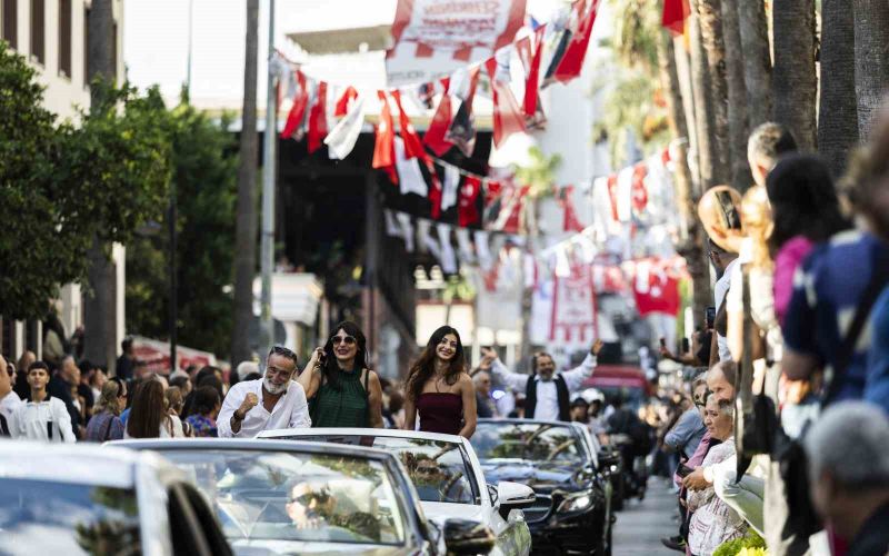 Üstü açık klasik otomobillerle halkı selamlayan ünlü isimlere, samba dansçıları, Yeşilçam maskotları ve bando takımları eşlik etti. Antalya Büyükşehir Belediye Başkan Vekili Büşra Dirgen Özdemir de Serap Aksoy ile birlikte klasik otomobilden vatandaşları selamlayarak çiçek dağıttı.