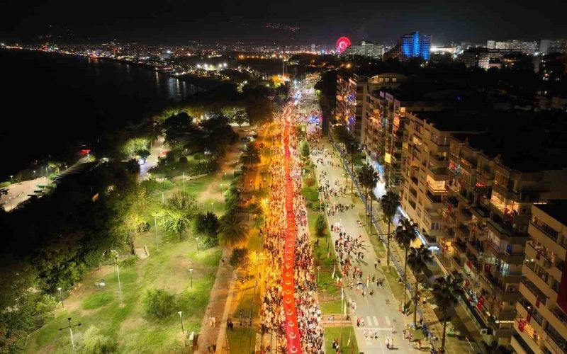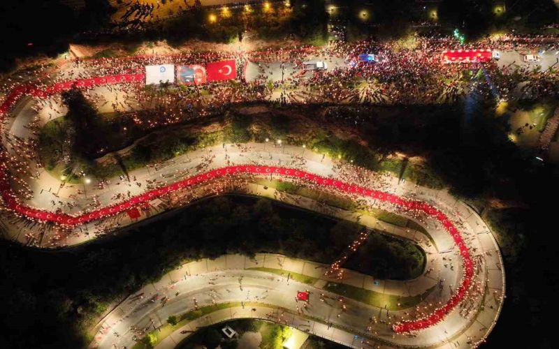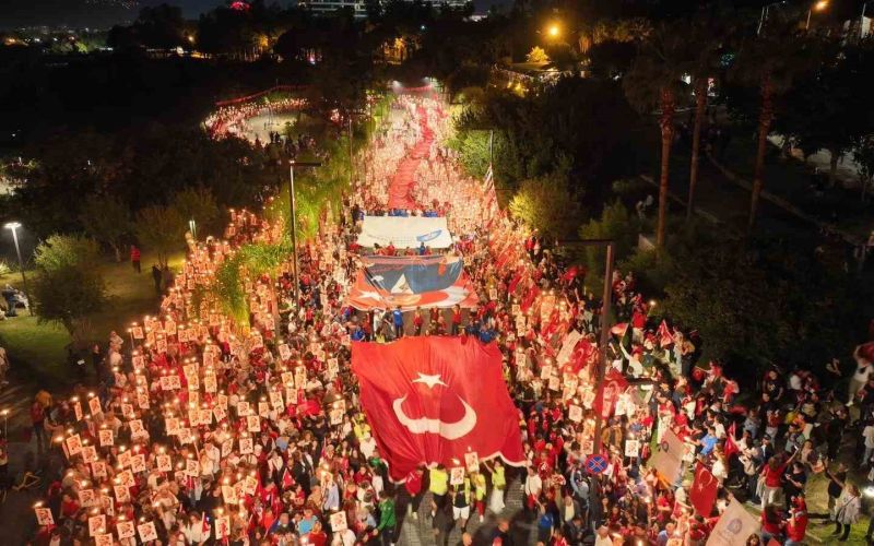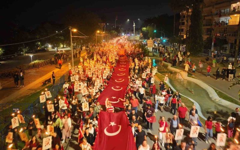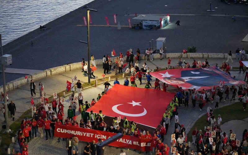 Konyaaltı Varyant’ta toplanan kalabalık yürüyüş güzergahını doldurdu. Antalya Valisi Hulusi Şahin, Büyükşehir Belediye Başkan Vekili Büşra Dirgen Özdemir, sivil toplum kuruluşlarının temsilcileri ve yüzlerce vatandaşın katıldığı yürüyüşte 400 metrelik dev Türk bayrağı taşındı.