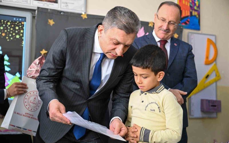 Antalya Valisi Hulusi Şahin, Dr. Gülşen-Dr. Baki Özpınar İlköğretim Okulu’nda düzenlenen yarı yıl karne dağıtım törenine katıldı.