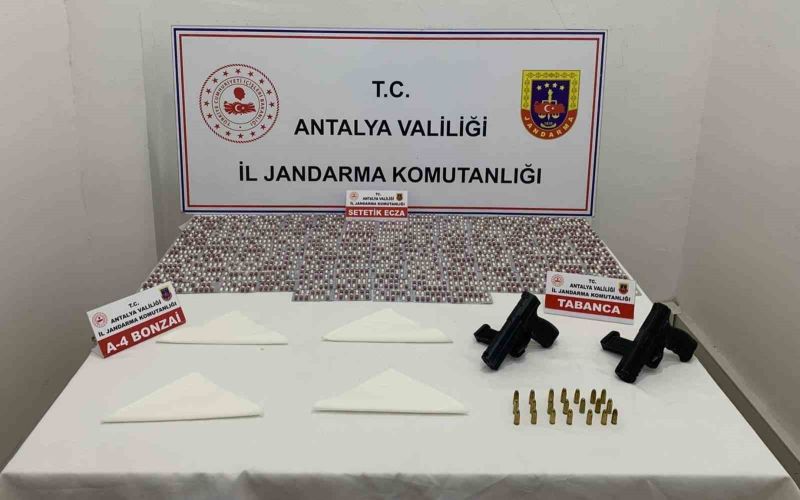 Antalya’nın Kepez ilçesinde jandarma ekiplerince düzenlenen uyuşturucu operasyonunda çok sayıda uyuşturucu madde ve ruhsatsız silah ele geçirildi, gözaltına alınan şüpheli tutuklandı.