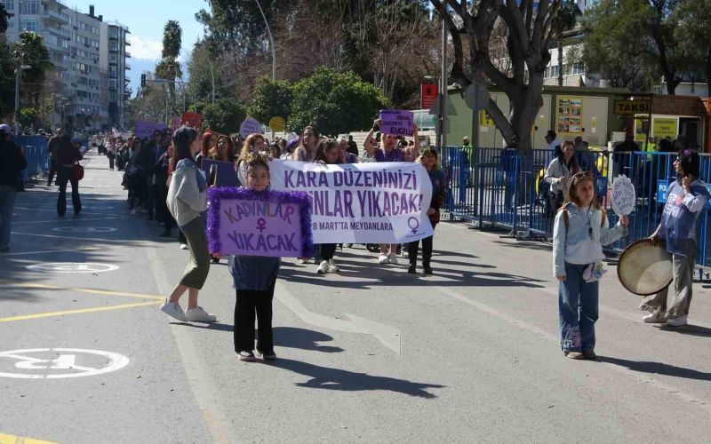 Antalya’da 8 Mart Dünya Kadınlar Günü dolayısıyla bir araya gelen çok sayıda kadın, sloganlar eşliğinde yürüyüş gerçekleştirdi.