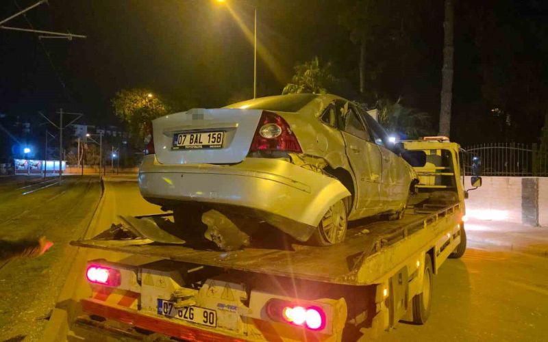 Antalya’da alkollü sürücü tramvay durağına daldı