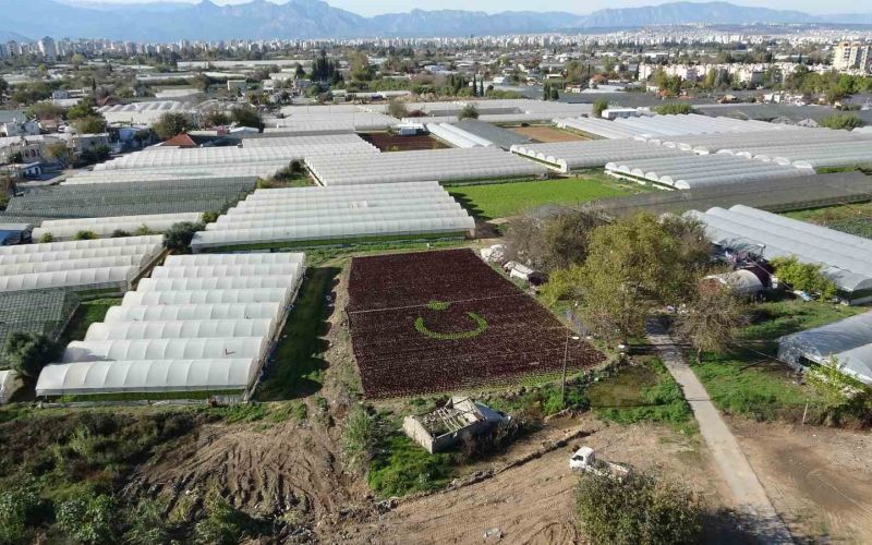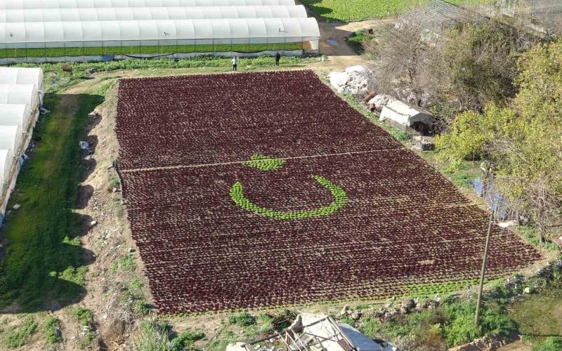 Antalya’da iki üreticinin, bir buçuk dönümlük tarlaya diktiği marullarla hilal ve yıldız deseni oluşturması yoğun ilgi gördü.