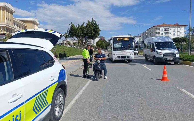 Antalya’nın Manavgat ilçesinde trafik denetiminde durdurulan elektrikli bisikletin tescilsiz olduğu ve sürücüsünün ehliyetsiz olduğu belirlenince toplam 126 bin TL para cezası uygulandı.