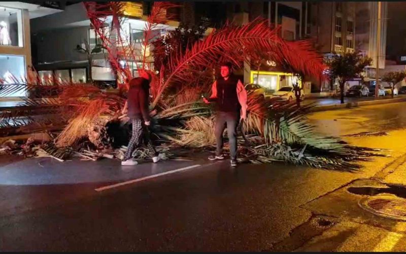 Trafik ekipleri yolda gerekli güvenlik önlemini alırken, trafik tek şeritten kontrollü olarak sağlandı. Park ve Bahçeler Müdürlüğü ekiplerinin yola savrulan palmiyeyi kesmek suretiyle kaldırmasının ardından caddede trafik akışı normale döndü. Fırtınayla birlikte zaman zaman yağmurunda şiddetini artırdığı gözlenirken, fırtınanın etkisini geç saatlere kadar sürdürmesi bekleniyor.