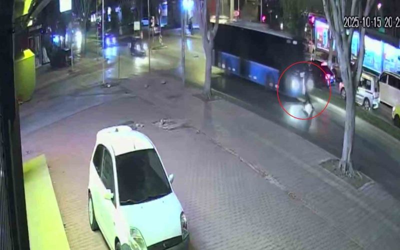 Antalya’da yolun karşısına geçmek isteyen yayanın, özel halk otobüsünün çarpması sonucu ağır yaralandığı kazanın güvenlik kamerası görüntüleri ortaya çıktı.