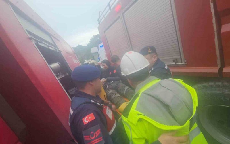 Sıkışan sürücüyü itfaiye kurtardı