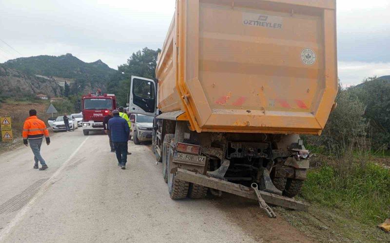 Antalya’nın Manavgat ilçesinde bulunan Taşağıl Mahallesinde seyir halindeki kamyon, cenaze taşıyan vatandaşlara yol vermek için duraklayan kamyona çarptı. Kazada araç içerisinde sıkışan sürücü ağır yaralandı.