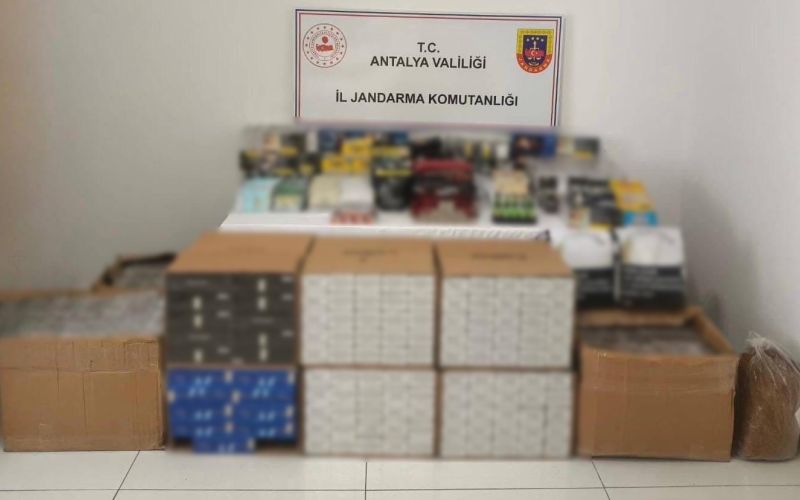 Antalya İl Jandarma Komutanlığınca yürütülen çalışmalar kapsamında Kaş Cumhuriyet Başsavcılığı’nın talimatıyla ilçede kaçak sigara ve tütün ürünleriyle mücadeleye yönelik operasyon gerçekleştirildi. Kaş İlçe Jandarma Komutanlığı ve İl Jandarma Komutanlığı Kaçakçılık ve Organize Suçlarla Mücadele Şube Müdürlüğü ekiplerinin müşterek çalışması sonucu E.D. isimli şüphelinin iş yeri ve aracında yapılan aramada 300 paket kaçak sigara, 20 elektronik sigara, 80 elektronik sigara likiti, 45 kilogram kıyılmış tütün, 50 kilogram nargile tütünü, 20 puro, 80 bin adet dolu makaron ve 70 bin adet boş makaron ele geçirildi.