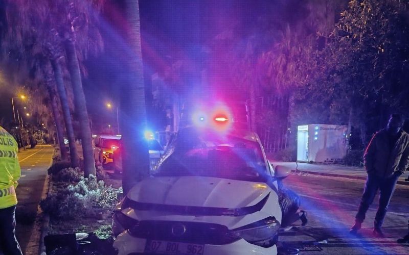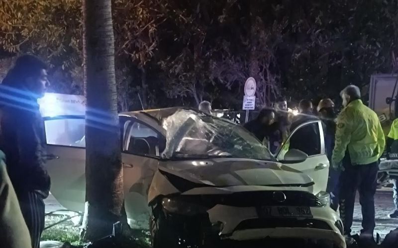 Antalya’da otomobil elektrik direğine çarptı: 2 yaralı