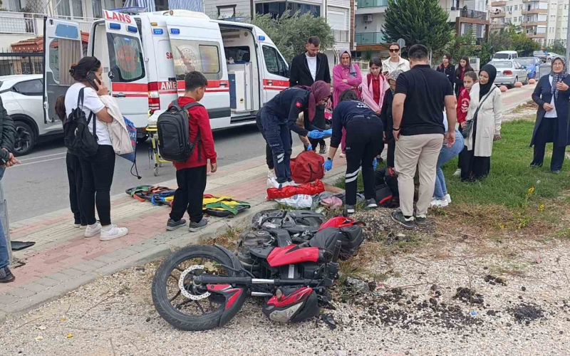 Kaza, Örnek Mahallesi 1502 ile 1525 sokak kesişiminde meydana geldi. Şükrü Sözen Köprüsü’nden Yunus Emre Caddesi yönüne seyreden Emircan T. yönetimindeki 07 BCL 897 plakalı motosiklet ile Pınar Ö. idaresindeki 07 AUA 946 plakalı otomobil çarpıştı. Çarpışmanın şiddetiyle savrulan motosikletli ile otomobil sürücüsü yaralandı. Yaralılar, sağlık ekiplerinin olay yerindeki ilk müdahalesinin ardından ambulansla hastaneye kaldırıldı.