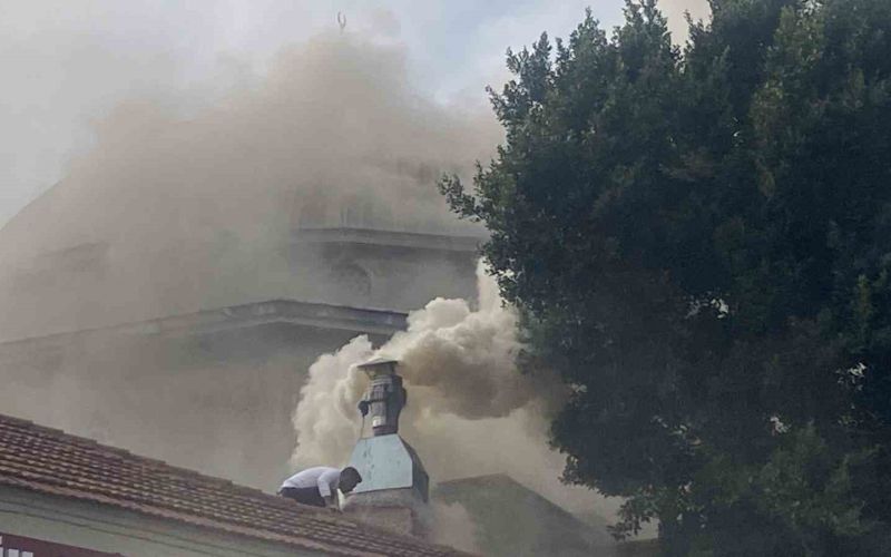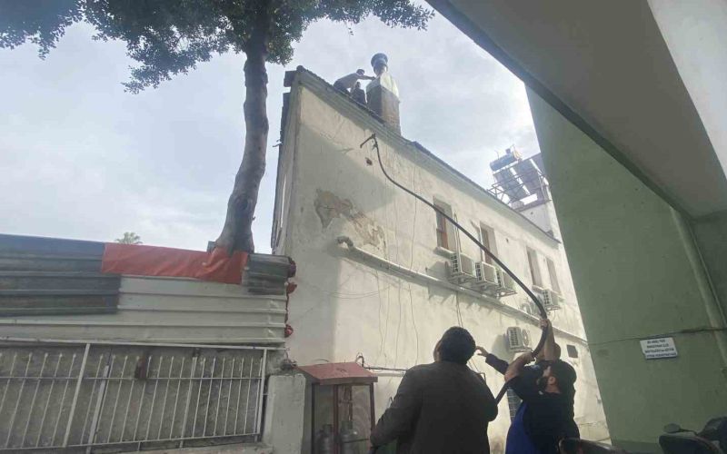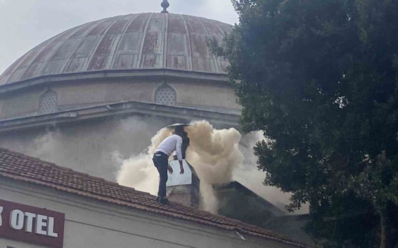 Antalya’da bir restoranın bacasında çıkan yangın ortalığı dumana boğdu. Restoranın bitişiğindeki camiye erken gelen cemaatten bazı vatandaşlar ise dumandan dolayı içeri girmek için beklemek zorunda kaldı, yangının bitimiyle birlikte camiye giriş yaptı.
