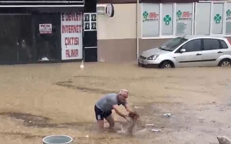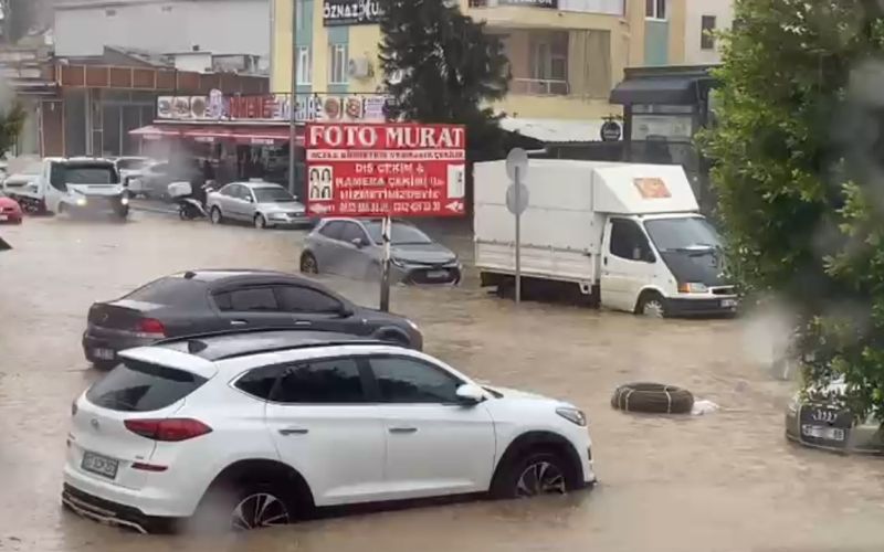 Antalya’nın Aksu ilçesinde bugün öğle saatlerinde aniden bastıran sağanak yolları adeta göle döndürdü. Sağanak nedeniyle bazı araçlar yolda mahsur kalırken, sürücüler ve vatandaşlar su giderlerini açmak için çaba harcadı. Giderlerin açılması ve su tahliye işlemi sonrası sular çekildi.
