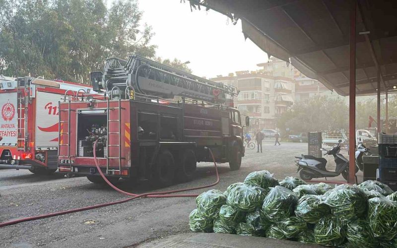 Yangın, saat 17.00 sıralarında Alanya’nın Saray Mahallesi Hacıkadırcıoğlu Caddesi üzerinde bulunan sebze ve meyve halinde meydana geldi. Edinilen bilgilere göre, haldeki bir sebze ve meyve deposunda henüz belirlenemeyen bir nedenle yangın çıktı. Dumanları fark eden çalışanlar, durumu 112 Acil Çağrı Merkezi’ne bildirdi. İhbar üzerine olay yerine Antalya Büyükşehir Belediyesine bağlı Alanya İtfaiye Birimi ekipleri sevk edildi. Yangın kısa sürede kontrol altına alınarak söndürüldü.