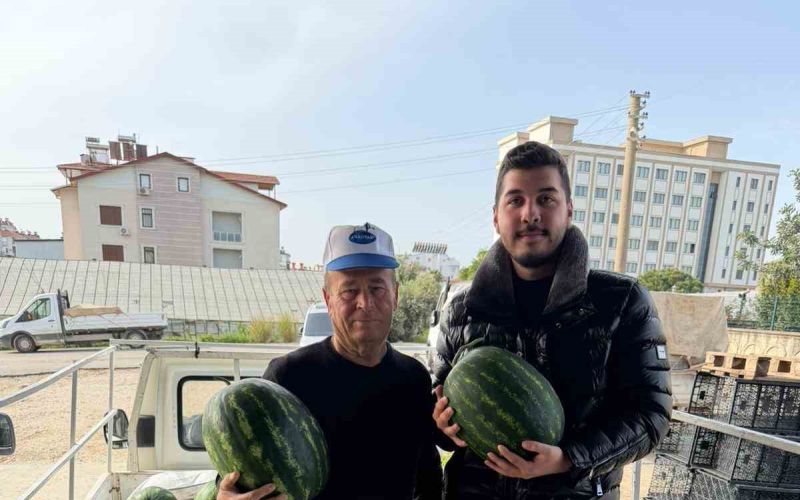 Antalya’nın Serik ilçesinde kış ortasında toprakla buluşturulan karpuz fideleri ilk meyvelerini verdi.
