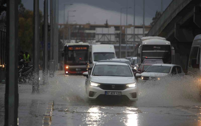 Antalya’da gece saatlerinde başlayan şiddetli yağış hayatı olumsuz etkileri. Kentin farklı noktalarında vatandaşlar araçlarında mahsur kaldı.