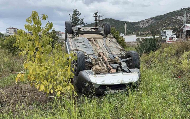 Antalya’da takla atan hafif ticari aracın sürücüsü yaralandı