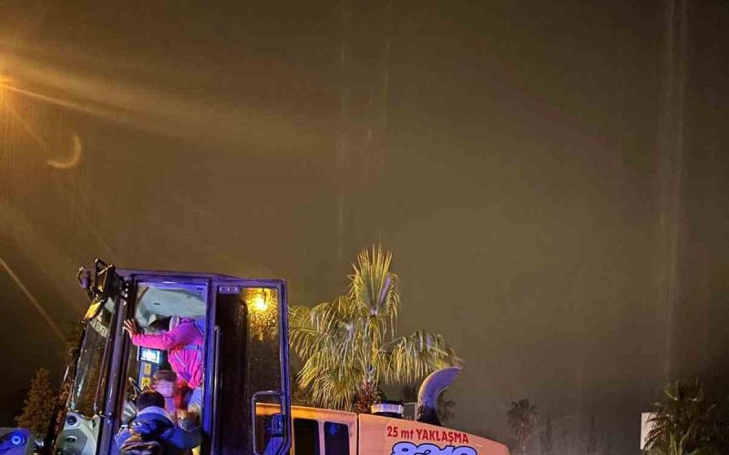 Meteorolojinin şiddetli yağış uyarısının ardından Antalya’nın Kemer ilçesinde etkili olan sağanak, ilçenin bazı noktalarında su taşkınlarına neden oldu. Çamyuva Mahallesi’nde 4 çocuk ve bir yaşlı kadının evlerinde mahsur kaldığı ihbarı üzerine bölgeye belediye ve jandarma ekipleri sevk edildi. Kemer Belediye Başkanı Necati Topaloğlu da ekiplerle birlikte bölgeye giderek çalışmalara katıldı. Yoğun su birikintisi nedeniyle bulunduğu yerden çıkamayan aile, kepçe yardımıyla güvenli alana taşındı. Kurtarılan aile, Başkan Topaloğlu’nun talimatıyla mahalledeki bir pansiyona yerleştirildi.