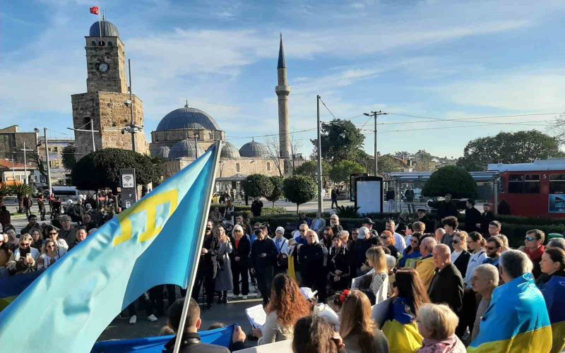 Antalya’da yaşayan Ukraynalılar, Rusya’nın işgali sonrası dört yıl süren direnişi anmak için Saat Kulesi önünde buluştu. Ukrayna Başkonsolos Vekili Yuliia Kuchma, Ukrayna-Rusya savaşının 4. yıl dönümü nedeniyle düzenlenen anma programında basın açıklaması yaptı.