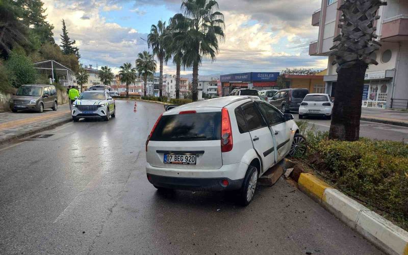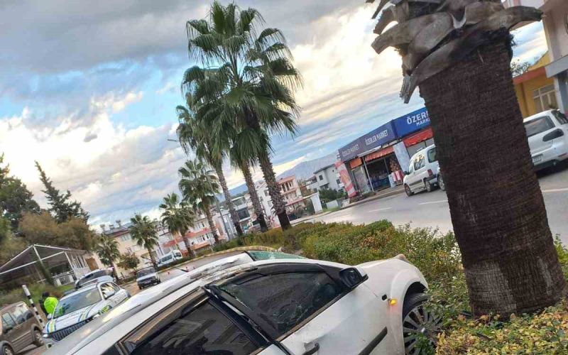 Antalya’da virajı alamadı, palmiye ağacına çarptı