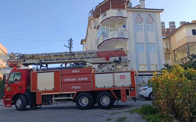 Antalya’nın Manavgat ilçesinde bir apartmanın çatısında çıkan yangın, alevler nedeniyle patlayan plastik su borusu sayesinde söndü.