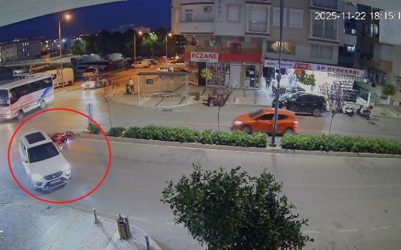 Kaza, Manavgat ilçesi Barbaros Caddesi’nde meydana geldi. Edinilen bilgiye göre, Salkımevler istikametinden gelip Sanayi Sitesi istikametine seyir halindeki seyir halindeki Ö.F.A.’nın kullandığı 07 BOC 329 plakalı motosiklet, kontrolsüz kavşağa geldiğinde, karşı yönden gelerek ‘U’ dönüşü yapmak isteyen Ş.K.’nin kullandığı 07 ANY 751 plakalı otomobile çarpmamak için fren yapınca devrildi. Devrilerek sürüklenen sürücü yaralanırken kazanın 112 Acil Çağrı Merkezi’ne bildirilmesi üzerine olay yerine polis ve sağlık ekipleri sevk edildi. Güvenlik kamerasına saniye saniyesine yansıyan kazada yaralanan motosiklet sürücüsü, 112 sağlık ekiplerinin olay yerindeki müdahalesinin ardından ambulansla hastaneye kaldırıldı.