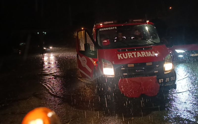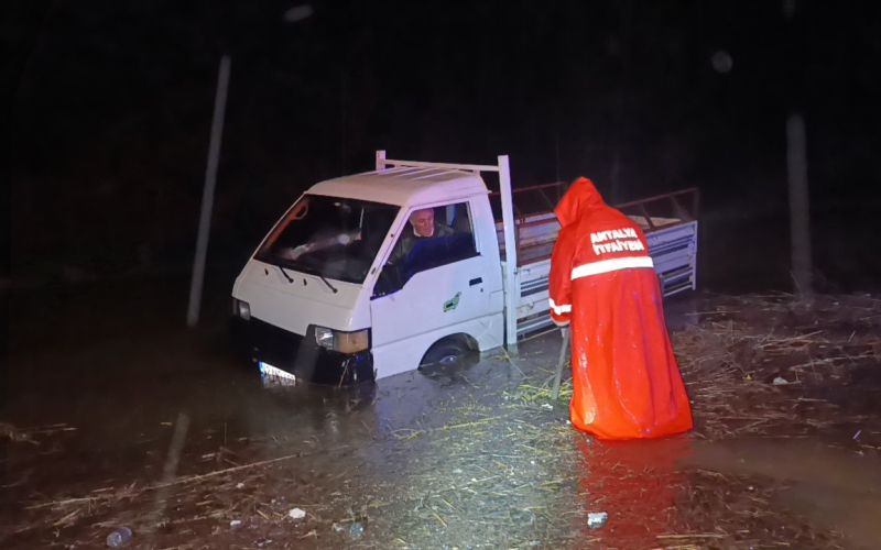 112 Acil çağrı Merkezine gelen ‘Ilıca Mahallesi Cezaevi yolunda aracıyla suda mahsur kalma’ ihbarı Antalya Büyükşehir Belediyesi İtfaiyesi Manavgat Birimi ve Manavgat İlçe Jandarma Komutanlığı Kumköy Jandarma Karakolu ekiplerini alarma geçirdi.