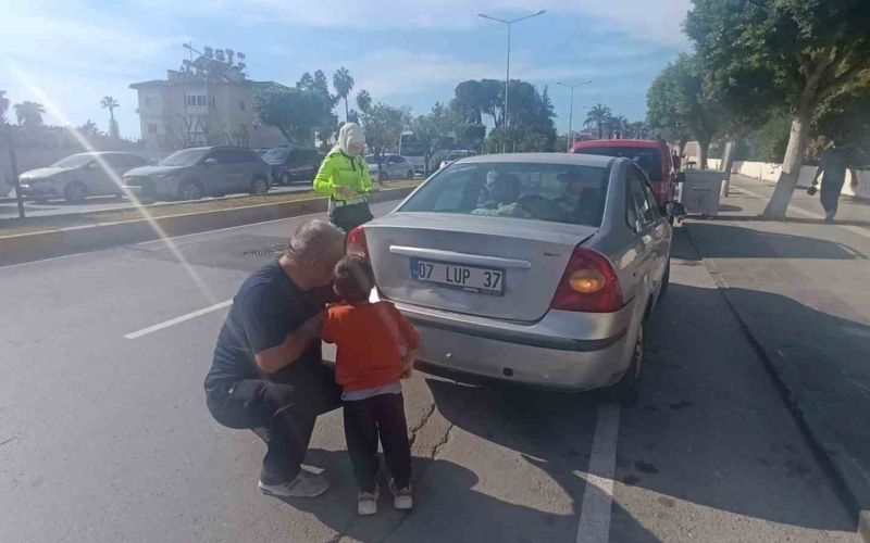 Antalya’nın Manavgat ilçesinde yayalara yol veren otomobile hafif ticari araç çarptı. Araçta bulunan ve kazayı yara almadan atlatan küçük çocuk, babasının elinden tutarak otomobilin hasarlı yerlerini gösterirken gözyaşlarına hakim olamadı.