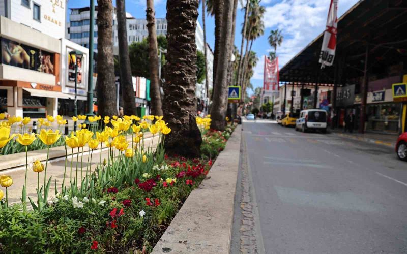 Baharın müjdecisi laleler Antalya sokaklarını renklendirdi