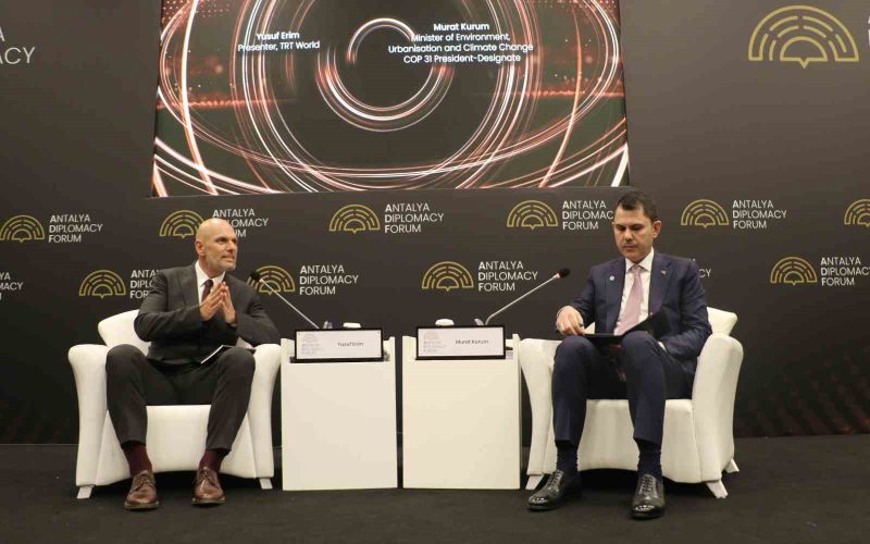 Antalya Diplomasi Forumu 2026 kapsamında düzenlenen sohbet paneline katılan Çevre, Şehircilik ve İklim Değişikliği Bakanı Murat Kurum, yaptığı konuşmada COP31 sürecinin uygulama ve icra odaklı bir yaklaşım olduğunu vurgulayarak, Türkiye’nin iklim değişikliğiyle mücadele, afet yönetimi ve yeniden inşa konularındaki tecrübelerini uluslararası alana taşıdığını ifade etti. 6 Şubat depremleri sonrası yürütülen konut seferberliği, Sıfır Atık Projesi ve çevre yatırımlarına da değinen Kurum, artan küresel krizler karşısında ülkelerin kendi kendine yetebilir olması gerektiğini belirterek, Türkiye’nin savunma, enerji ve gıda alanlarında güçlü ve bağımsız bir ülke olma hedefini vurguladı.