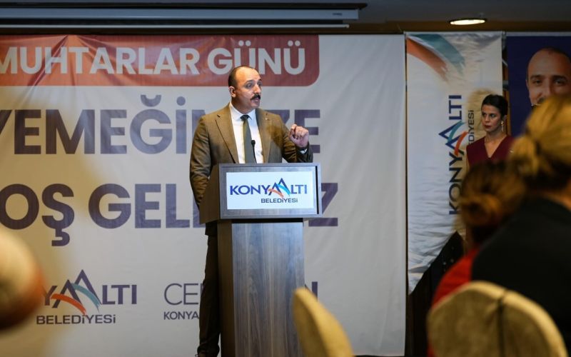 Düzenlenen Muhtarlar Günü Yemeği’nde konuşan Konyaaltı Belediye Başkanı Cem Kotan, "Muhtarlar Meclisi’nde sizlerle birçok konuyu paylaşıyoruz. Hedefimiz, temelde demokrasiyi Konyaaltı’na tamamen yerleştirmek, sizlerin fikirleri ve düşüncesiyle yönetmekti. Bir buçuk yıldır bunu başardığımızı düşünüyorum. Hem üretiyoruz hem de sorunları çözme noktasında birlikte hareket ediyoruz" dedi. Kendisi ve Konyaaltı Belediyesi kurumunun muhtarları daima önemsediğini vurgulayan Başkan Kotan, "Sizlere büyük değer veriyoruz. Sizler demokrasinin mihenk taşlarısınız. Bu yüzden sizlerle yol yürüyoruz. Vatandaşın ulaştığı ilk kişiler sizlersiniz. Bir sorun olduğu zaman sizlerden bilgi alıyoruz. Muhtarlar Günü’nüz kutlu olsun. Hep birlikte Konyaaltı’nı yönetmeye ve istediğimiz seviyeye ulaştırmak için çalışmaya devam edeceğiz" ifadelerini kullandı.